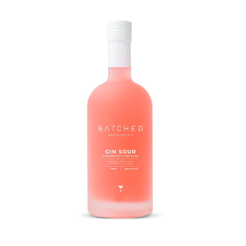 Introducing Batched Gin Sour Strawberry & Rhubarb. Impress your friends with this easy & delicious treat, simply shake with ice & pour for a beautiful cocktail.